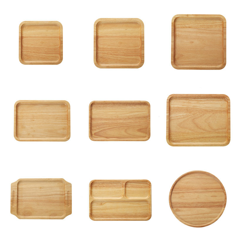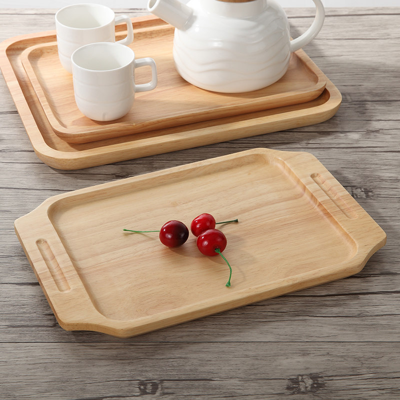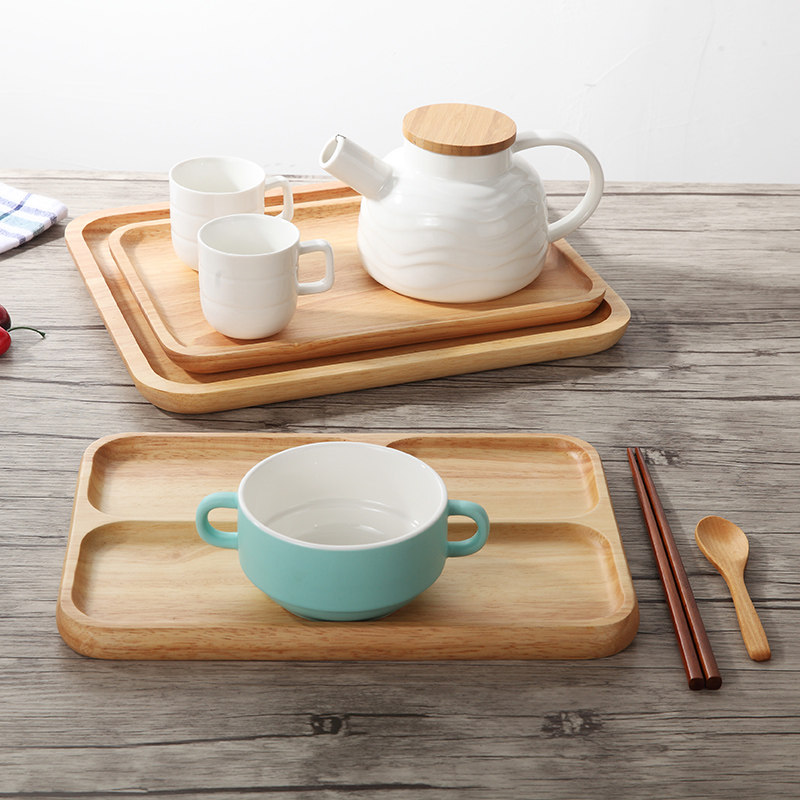 Day-type rectangular rubber wood plate minimalist solid wood Tray Creative Tea Tray Home Water Cup Tray Breakfast Pastry Dish