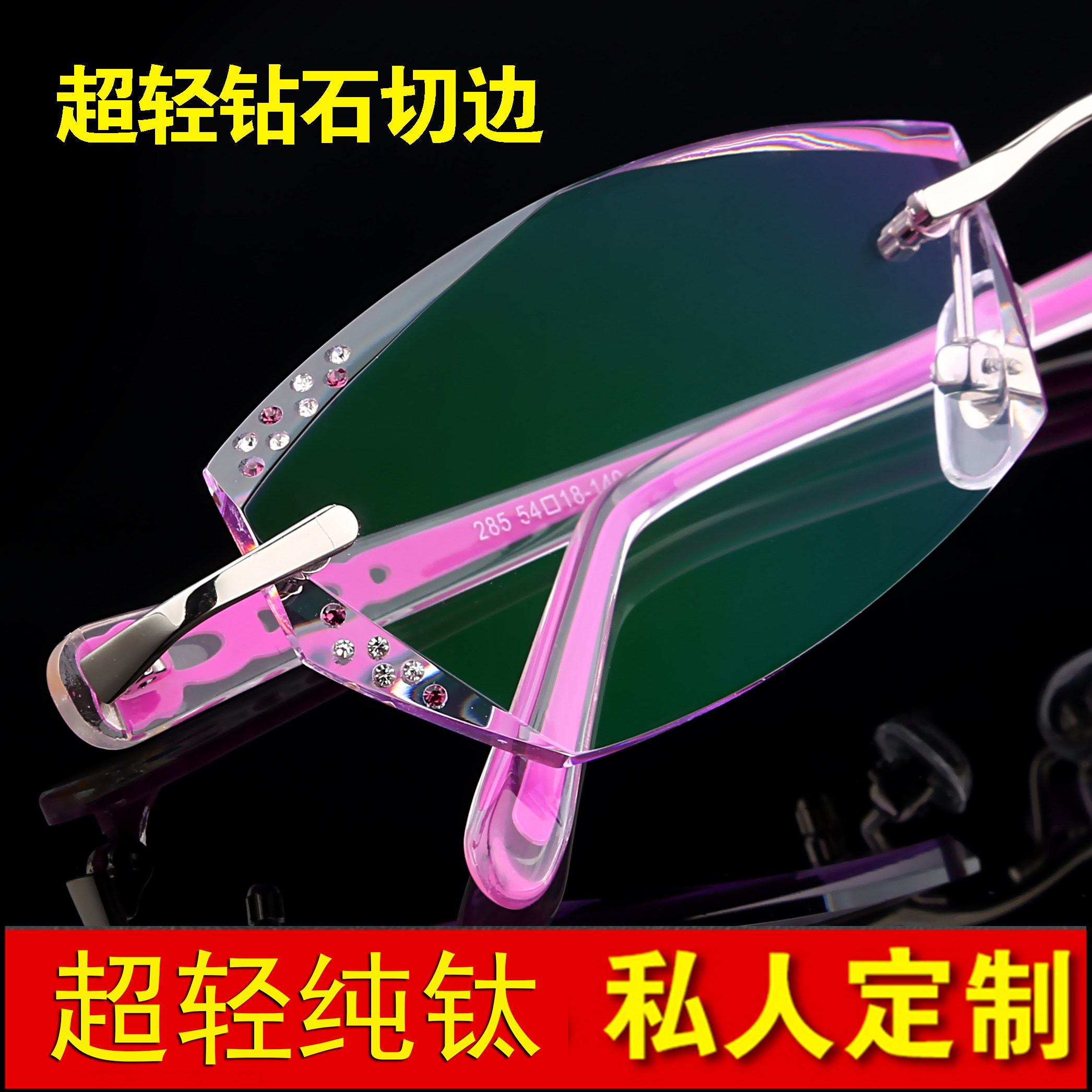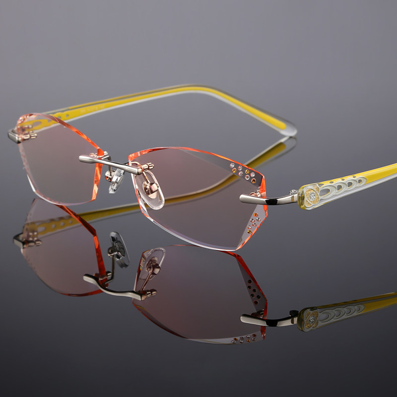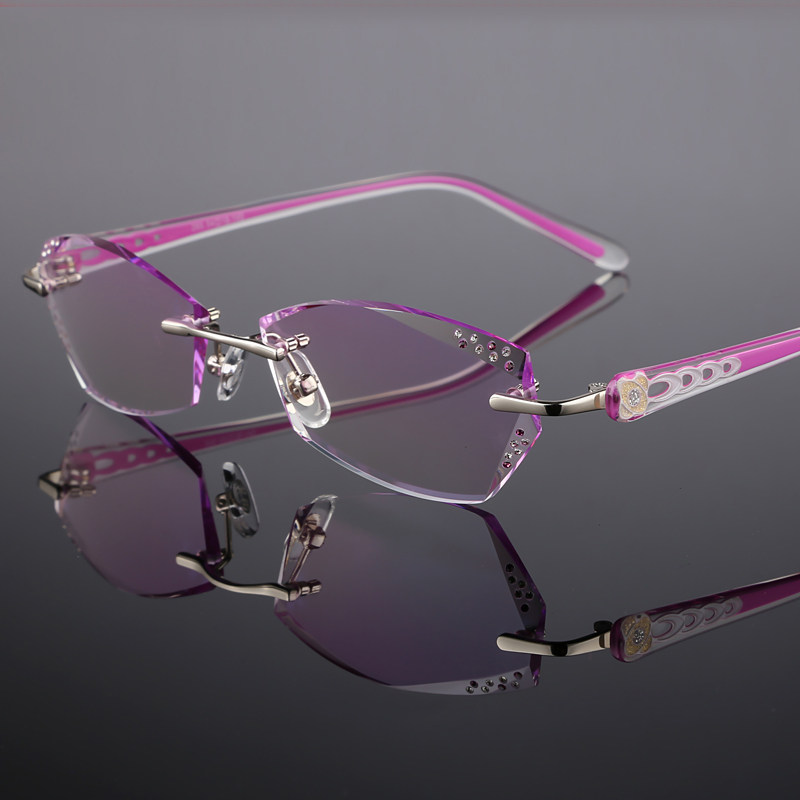 Pure titanium myopia eye frame female ultra light unframed spectacle frame discoloration glasses finished with cut edge glasses flat light wave