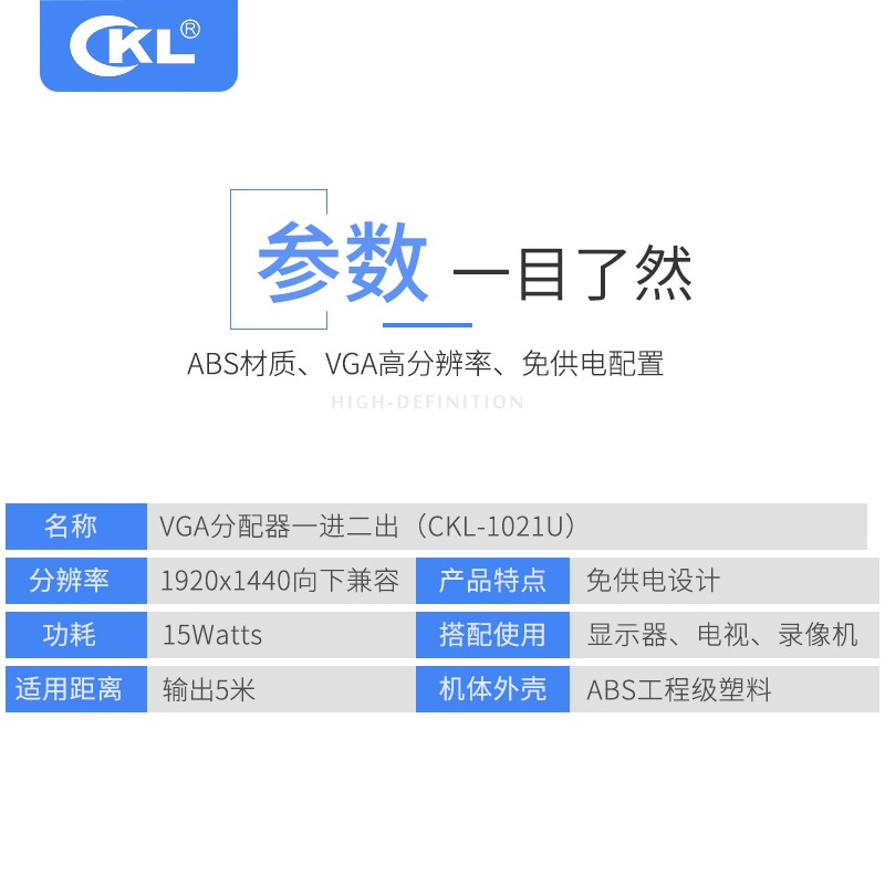VGA distributor one point two high definition split screen video computer 1 point 2 line one in two output divider 1021U-1