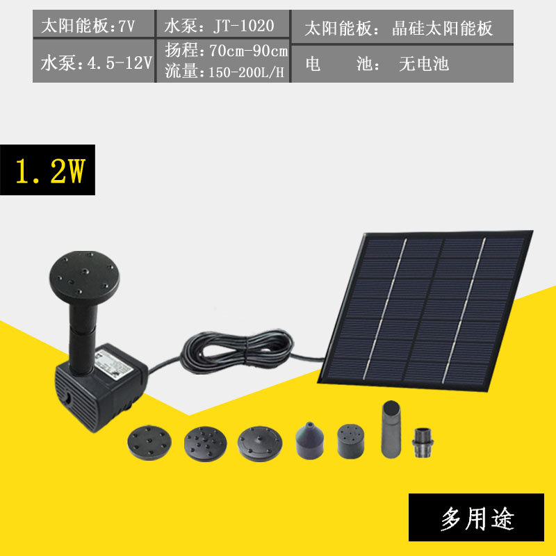 7V1 2W Miniature Solar Fountain Solar Water Pump 5 Types of Nozzles DC Brushless Water Pump Long Life Special