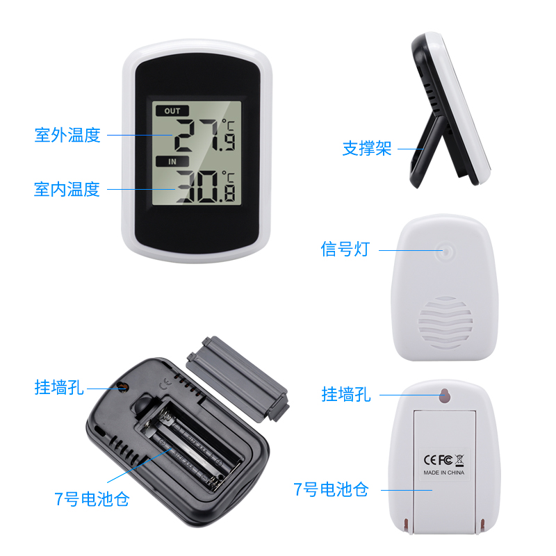 Wireless electronic thermometer outdoor inside and outside hanging wall thermometric table high-precision baby house with large screen temperature measuring instrument