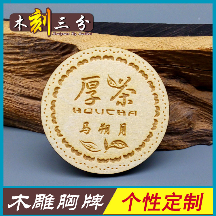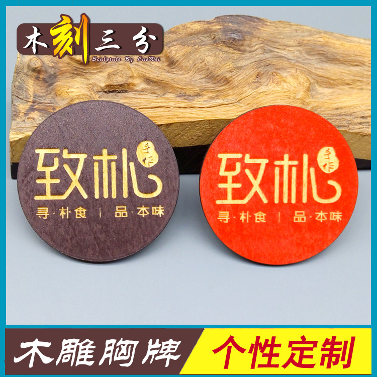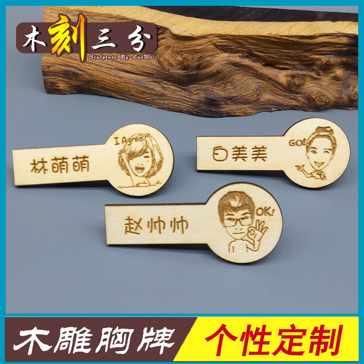 High-grade wooden chest brand alien brand Magnette Customized badge Wooden pin bra brand DIY Wooden carving work certificate