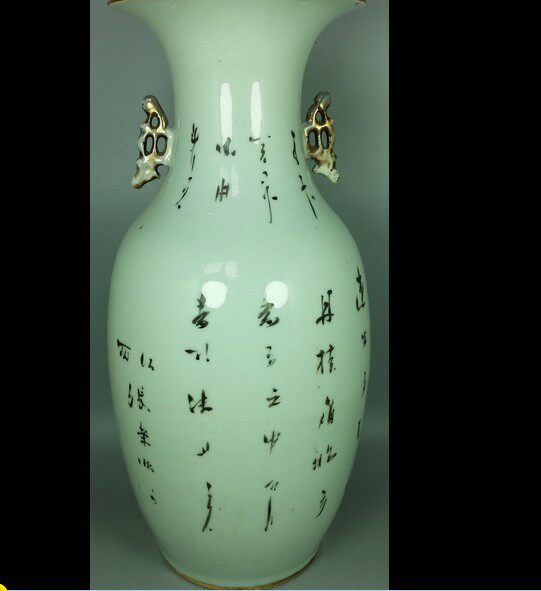 10213 Qing Dynasty Republic of China Antique Old Goods Bag Real Bag Old Appraisal 150 Characters Color Painted Double Ear Bottle