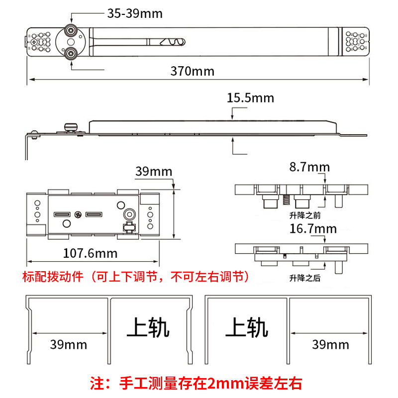 Sliding door buffer sliding door damper wardrobe anti-collision track pulley mute positioning anti-rebound closed Hongxin