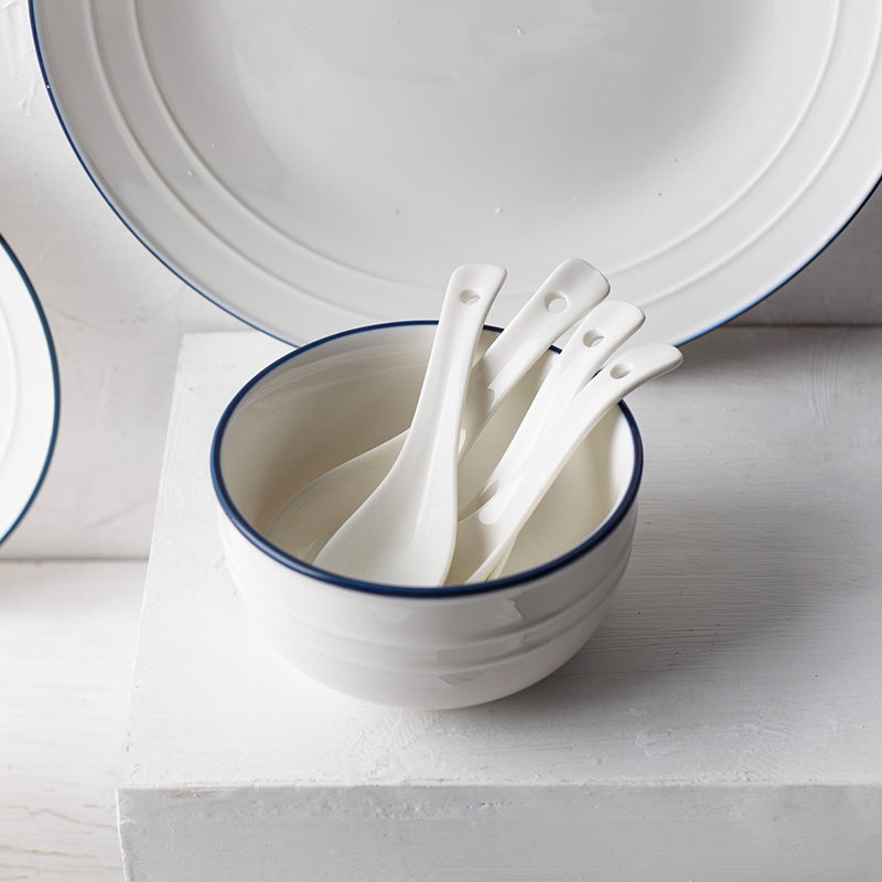 Qigu Liangpin Nordic simple household blue and white ceramic teapot Water cup Dinner plate Soup bowl hourglass bowl Stew cup Variety