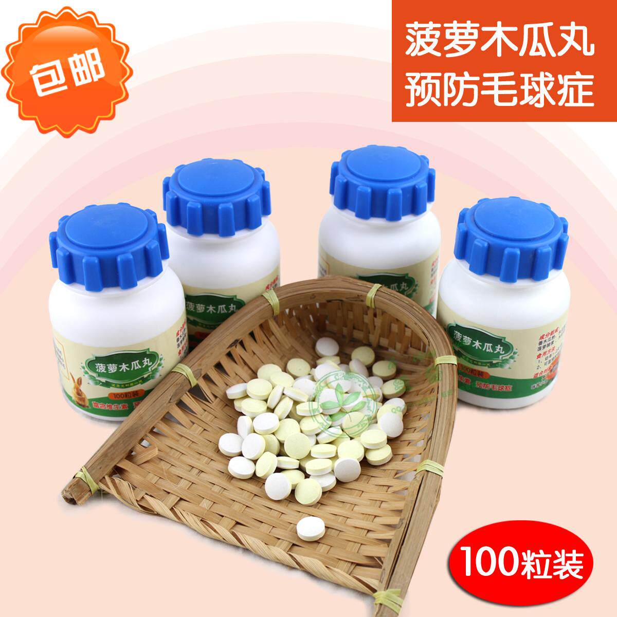 100 bottled papaya pills, pineapple, papaya slices, fur balls, rabbit, guinea pigs, Dutch pigs, healthy hair cream