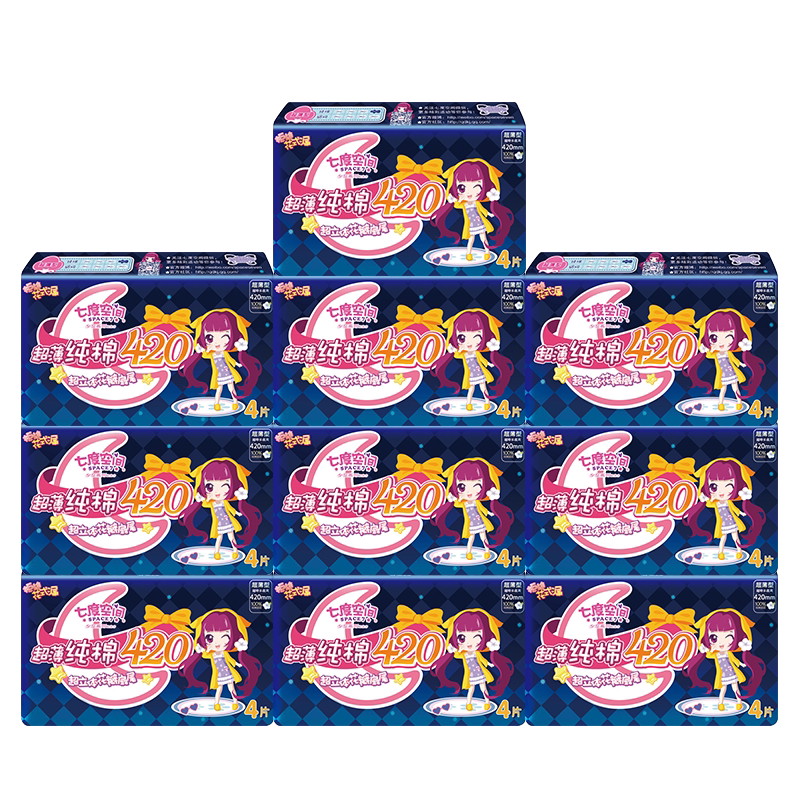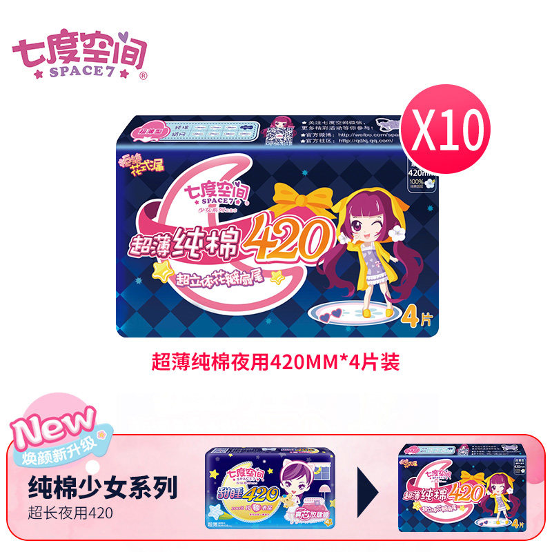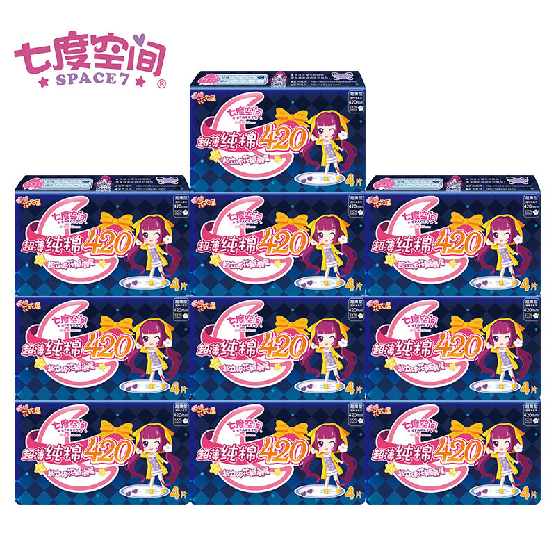 Seven-degree space sanitary cotton female extra-long night with pure cotton soft sweet sleeping 420mm lengthened anti-side leakage aunt towel