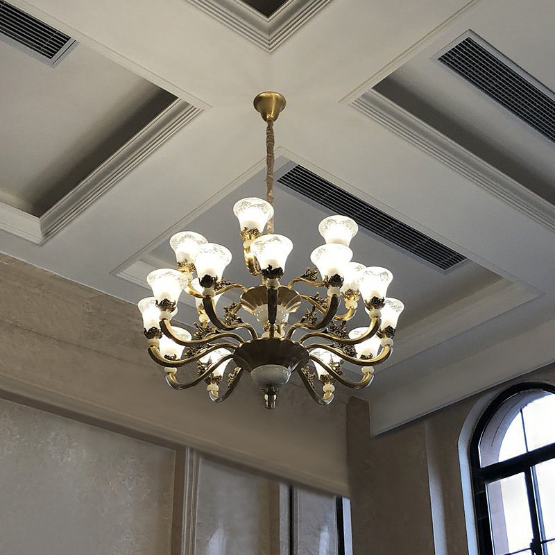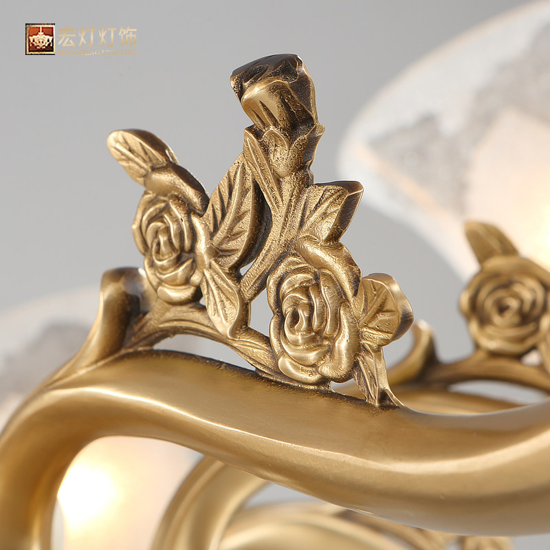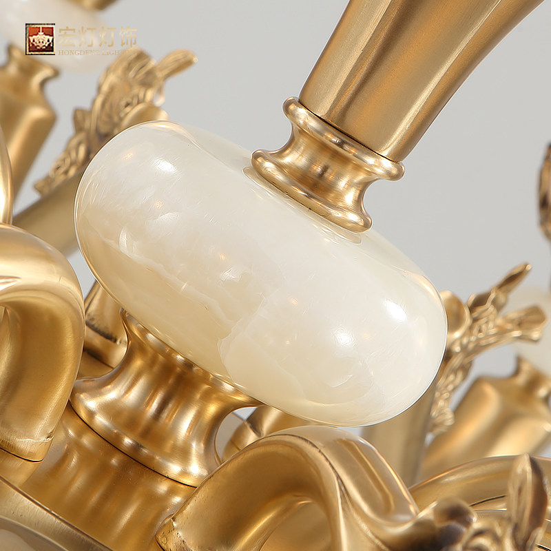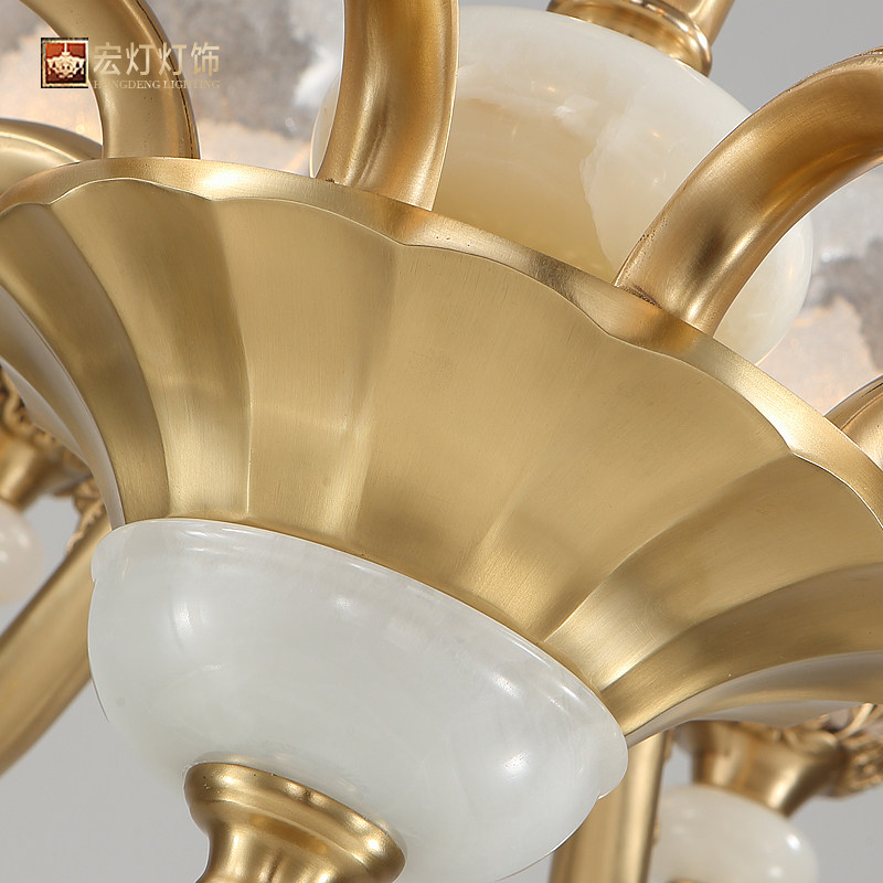 Luxury American all-copper living room chandelier European-style bedroom lamp art retro atmosphere copper lamp jade lamp dining room lighting