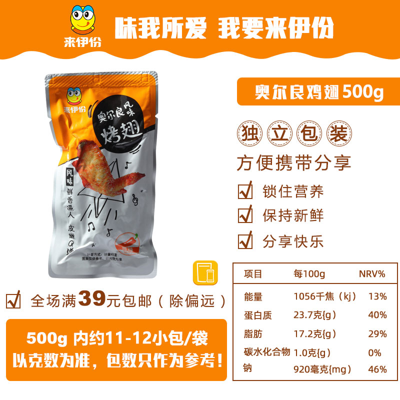 Laiyi's Orleans-style grilled wings 500g honey juice fresh meat net red snack casual snack