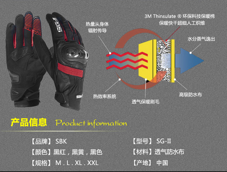 SBK Motorcycle Cycling Gloves Breakthrough Waterproof and Preservation and Warming Protection Racing SG-2