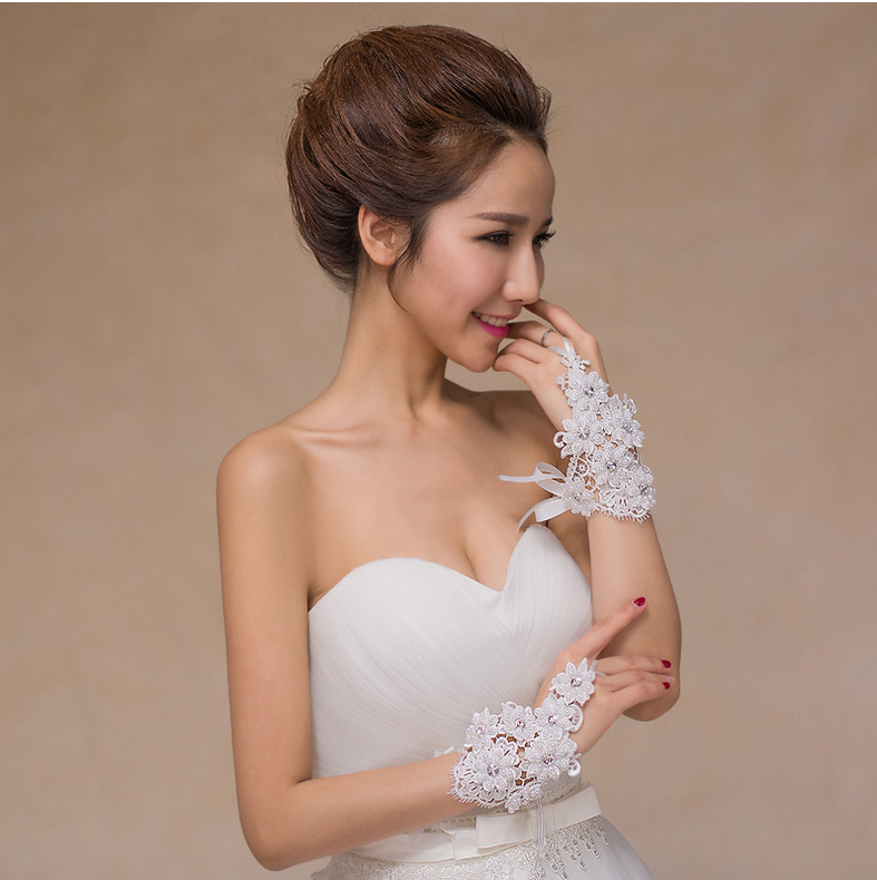 Korean lace stickers finger gloves for short wedding dress bride wedding gloves for wedding accessories