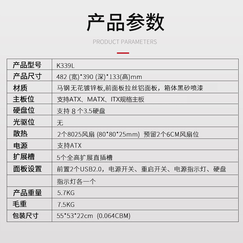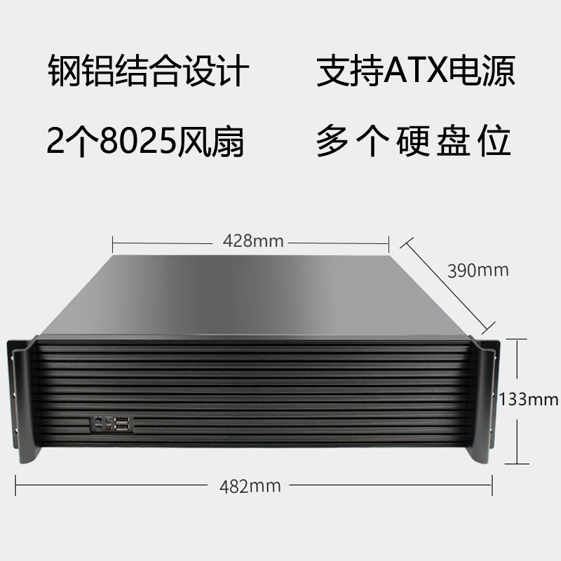 3U industrial chassis rackmount 390 short aluminum panel ATX large motherboard multi-disk horizontal industrial computer server