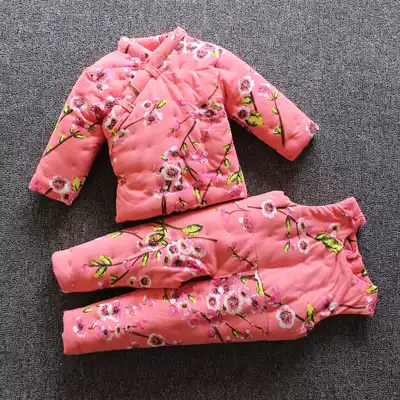 Baby handmade cotton flower cotton coat suit Autumn and winter newborn baby male and female children's partial lapel thickened winter children's clothing