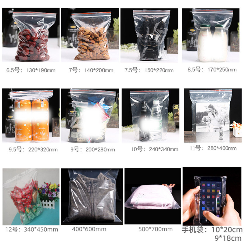 Self-sealing bag zipper sealing bag transparent large, medium and small storage parts A4 food plastic bag plastic bag