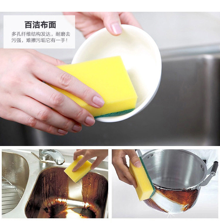 Sponge scouring pad wipe kitchen brush pan cloth dish cloth non-stick oil strong decontamination rag 12 pieces
