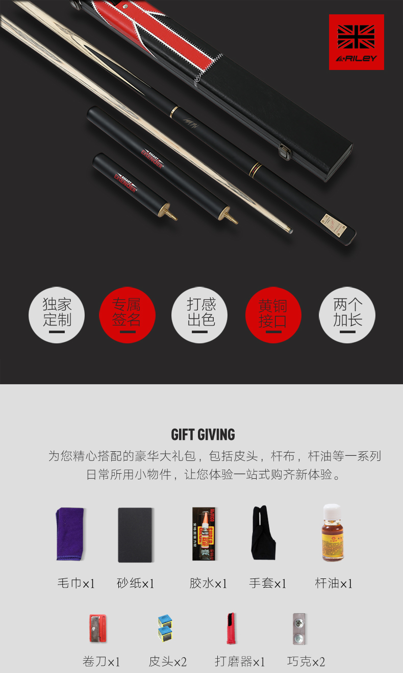 BRITISH RILEY BILLIARD CLUB SMALL HEAD Snoke CLUB SELBY SIGNATURE SNOOKER CLUB DOUBLE EXTENDED 9 5MM ROD