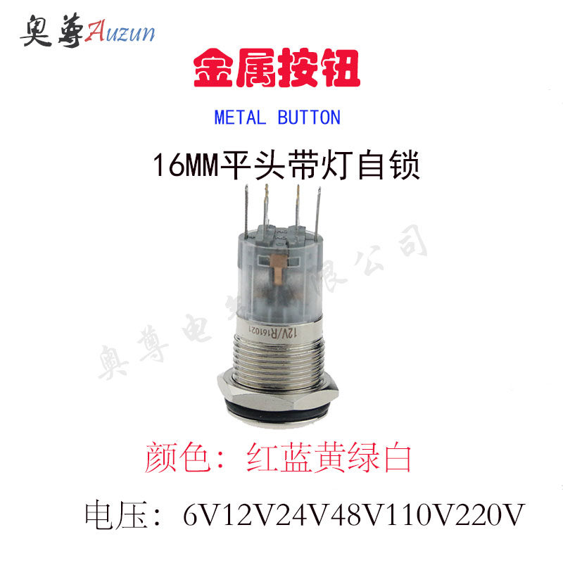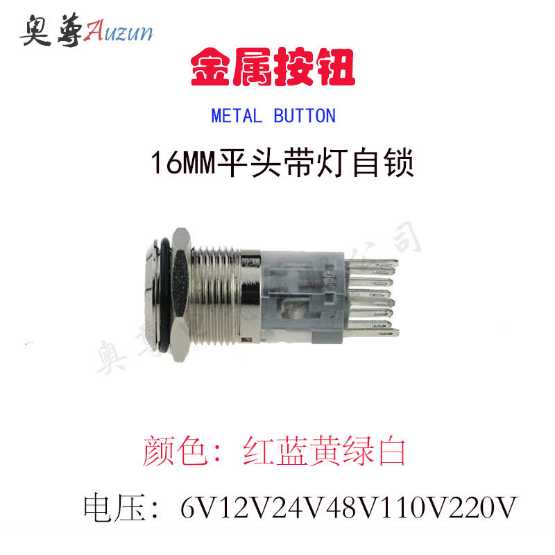 16MM metal button switch self-locking with light button two normally open two normally closed 8 feet to control two devices