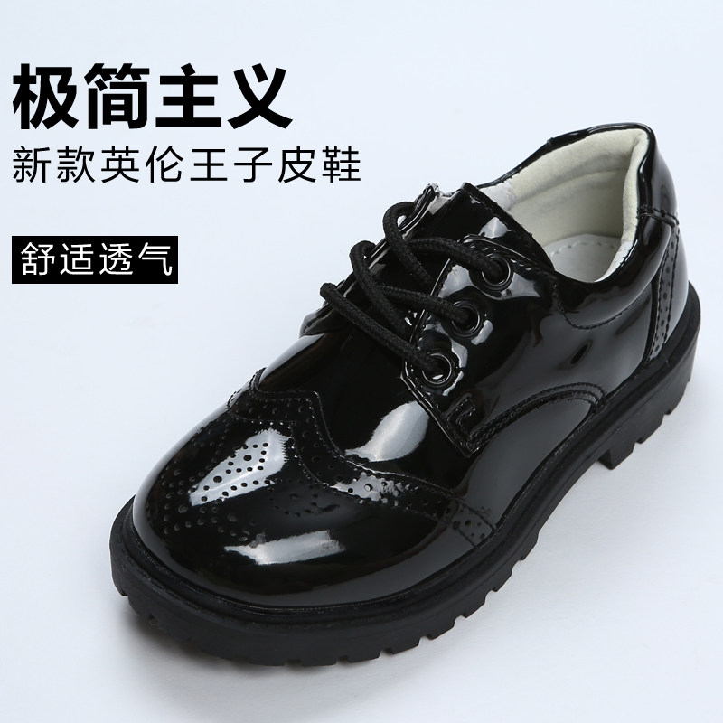 Boy Leather Leather Black Lacing Performance Suit Matching White Prince Child Shoes Casual Bright Light Face Spring Autumn Breathable