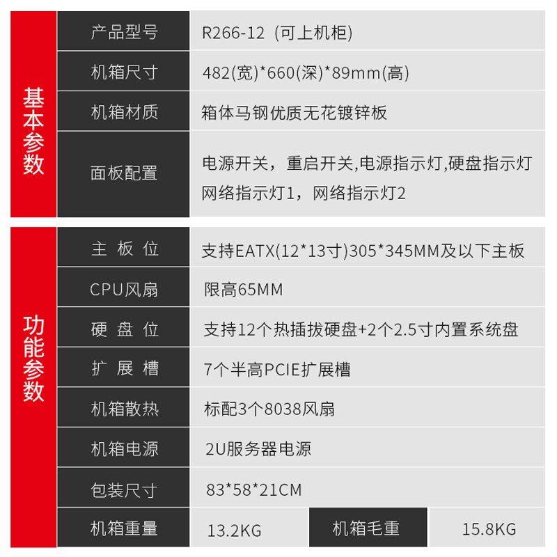 12-bay main case 12-bay main case 2U600W power supply 12-bay main case A pair of upper cabinet rails 12-bay main case 2U600W power supply A pair of rails