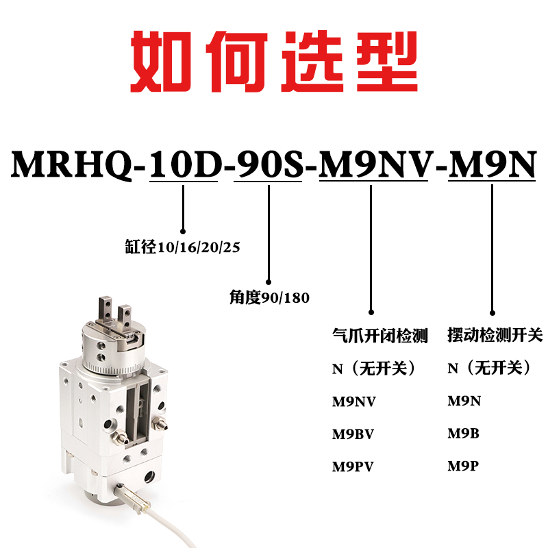 SMC type rotating finger cylinder MRHQ10D-90S swing gas claw MRHQ16D 20D 25D-180S-N