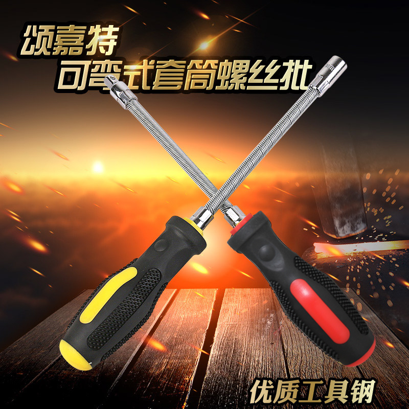 Multi-purpose throat screwdriver multi-angle spring batch hose screwdriver outer hexagonal sleeve batch 4-14mm