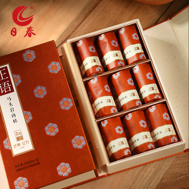 Sun-spring tea (positive language Wuyi Ma head rock cinnamon 3000 single case) 63g red square wuyi rock tea gift box dress