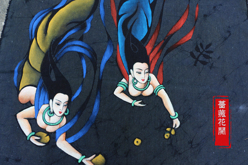 Boutique Collection Intangible Cultural Heritage Batik Wall-mounted Painting Buddhist religious Dunhuang Fly decorated door curtain