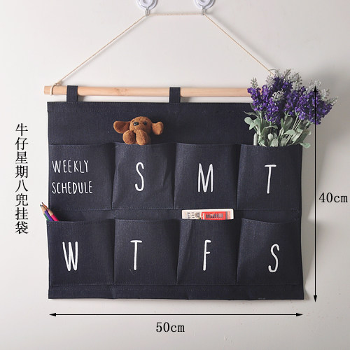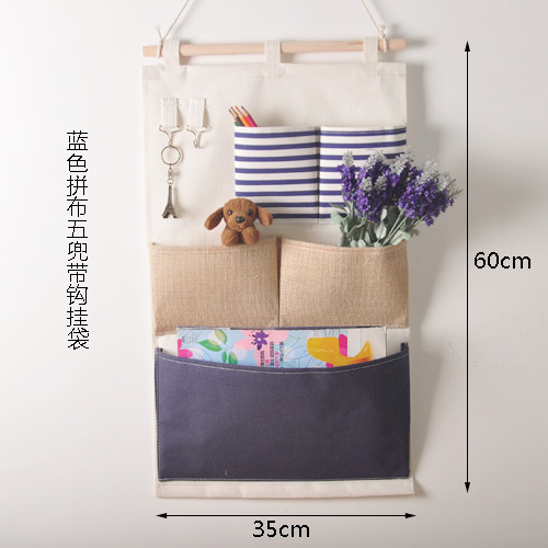 Blue patchwork with hook seven-pocket hanging bag Blue strip with hook four-pocket hanging bag Plane 5-pocket hanging bag Red 2-pocket hanging bag Patchwork six-pocket with tissue box hanging bag Blue grid floral 5-pocket hanging bag Cowboy week eight-pocket hanging bag Cowboy month