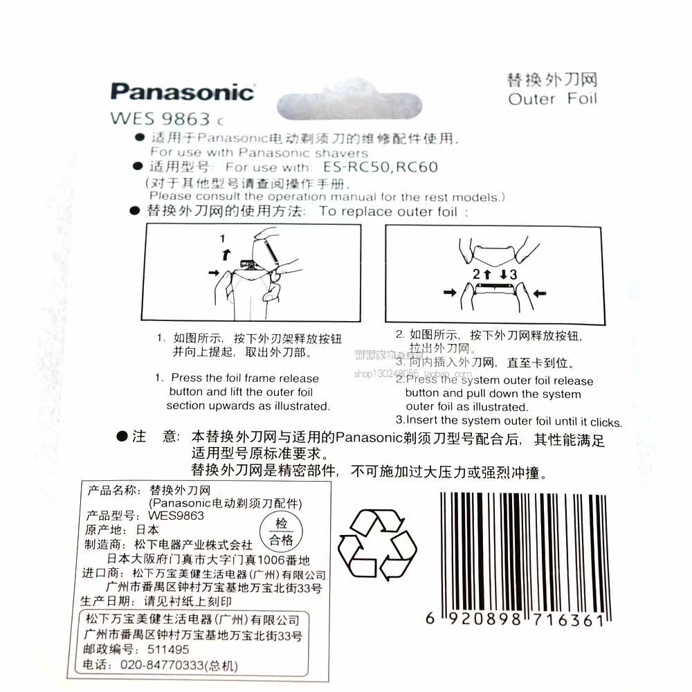 Panasonic razor accessories replace the outer knife mesh cover WES9863 suitable for RC60 RP50 RW35 RC50