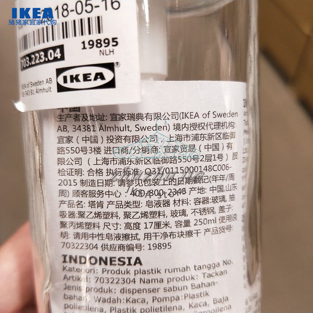IKEA IKEA Taken Soap Sapon Shampoo Bath Press Bottle White Glass 200ml