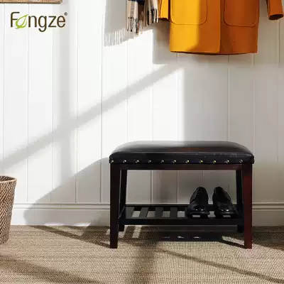 Fengze American shoe stool solid wood Nordic simple door entrance bed tail frame small shoe stool soft bag cushion