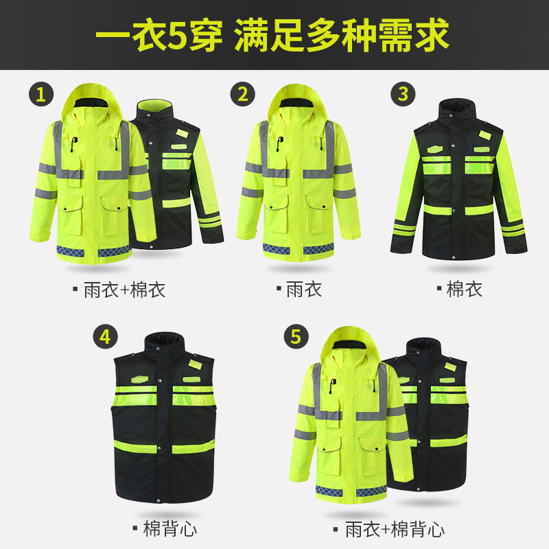 cns reflective cotton clothes men's winter thickened traffic safety cotton suit fluorescent jacket expressway anti-chilling suit