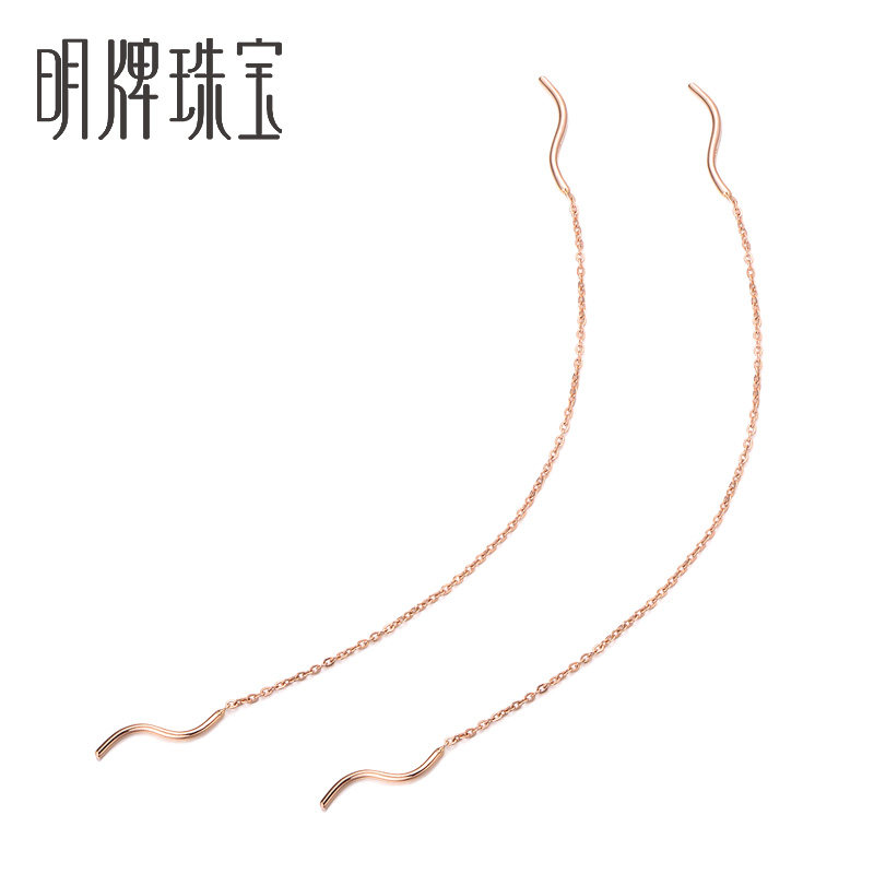 Ming Brand Jewelry 18K Gold Ear Chain Simple Color Gold Ear Chain Long Ear Needle Fashion Earrings CSH0031 Pricing