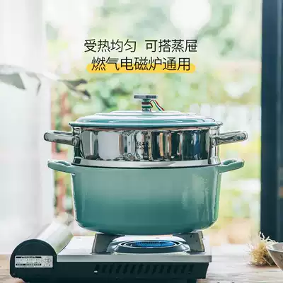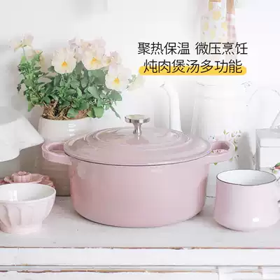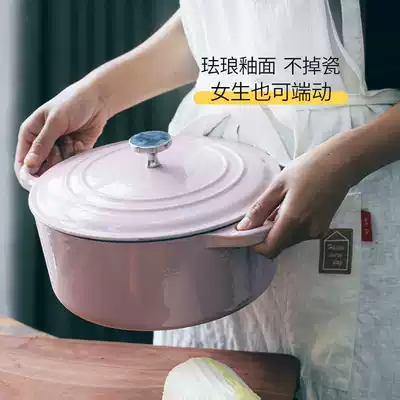 Iron workshop cast iron pot Enamel pot Soup pot Household casserole Seafood stew pot Non-stick induction cooker braised and baked enamel pot