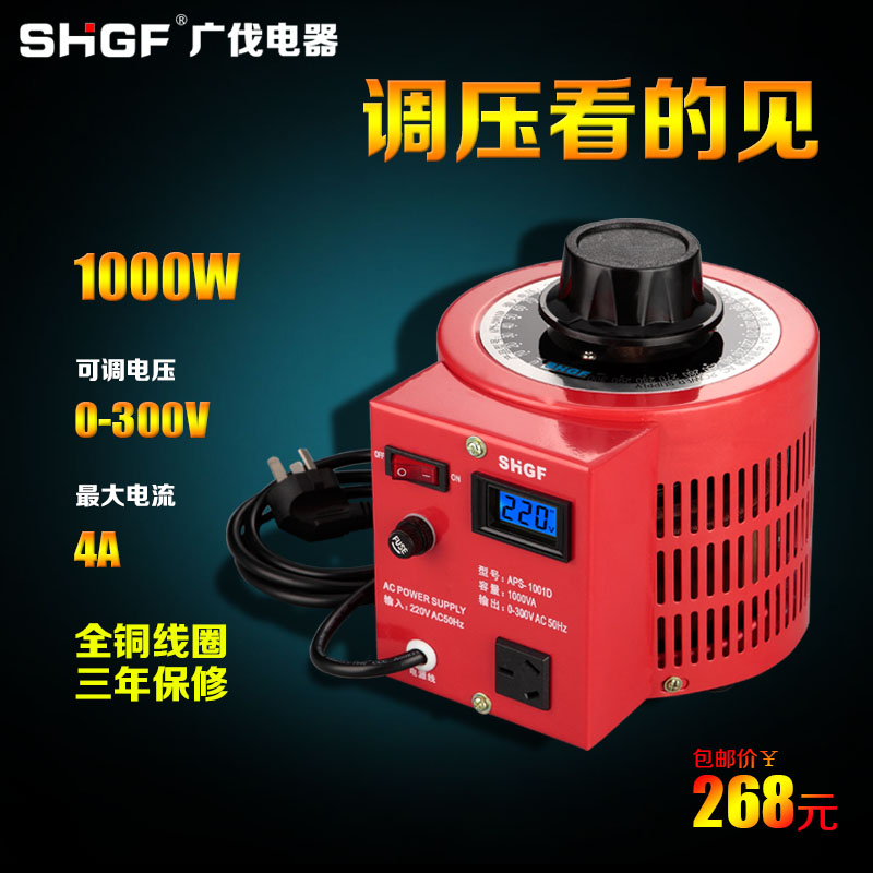 Guangfa single phase voltage regulator 1000W input 220V adjustable 0-300V AC step-up and step-down power supply 1KVA