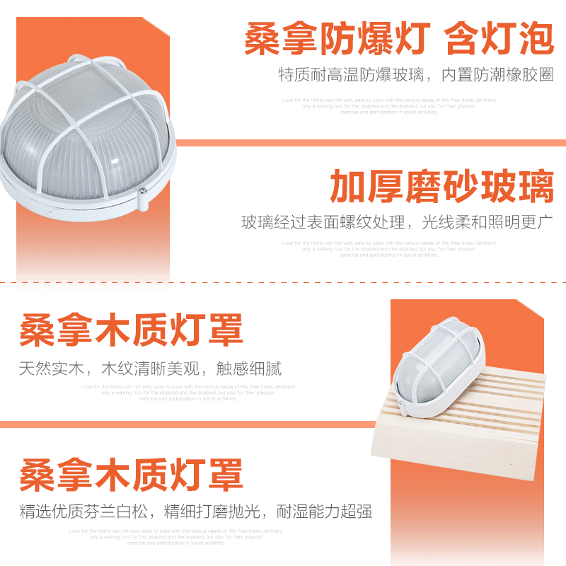 POOLMATE sauna accessories dry steam room sweat steam room sauna room lampshade explosion-proof lamp solid wood moisture-proof lampshade