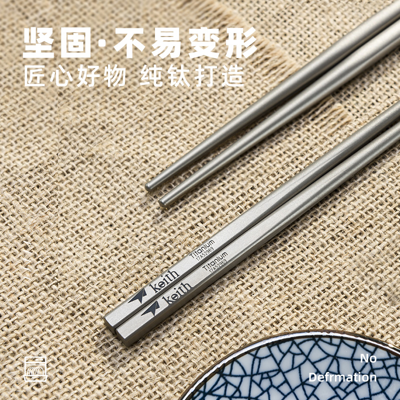 Keith Armor titanium chopsticks Outdoor portable chopsticks Household non-slip metal chopsticks Healthy lightweight pure titanium tableware