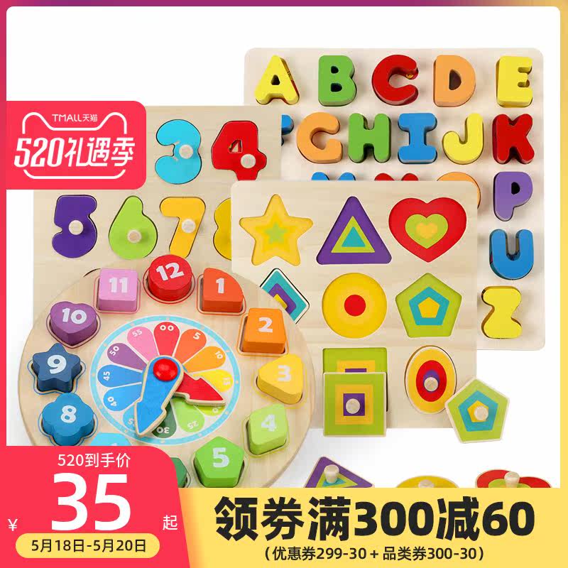 Children puzzle 3-year-old educational toys for toddlers baby enlightenment Early education girl shape digital building blocks Clock boy