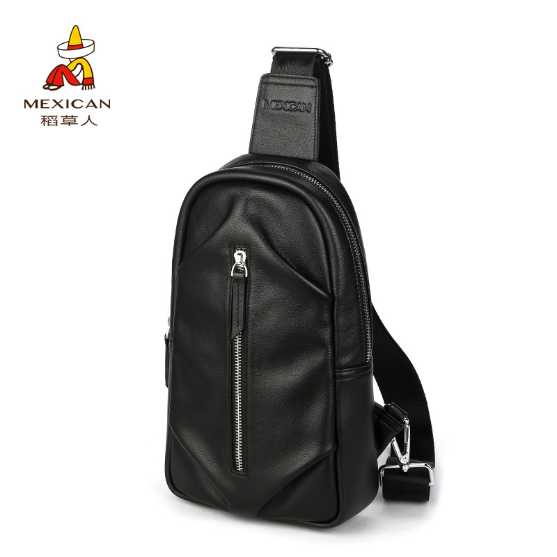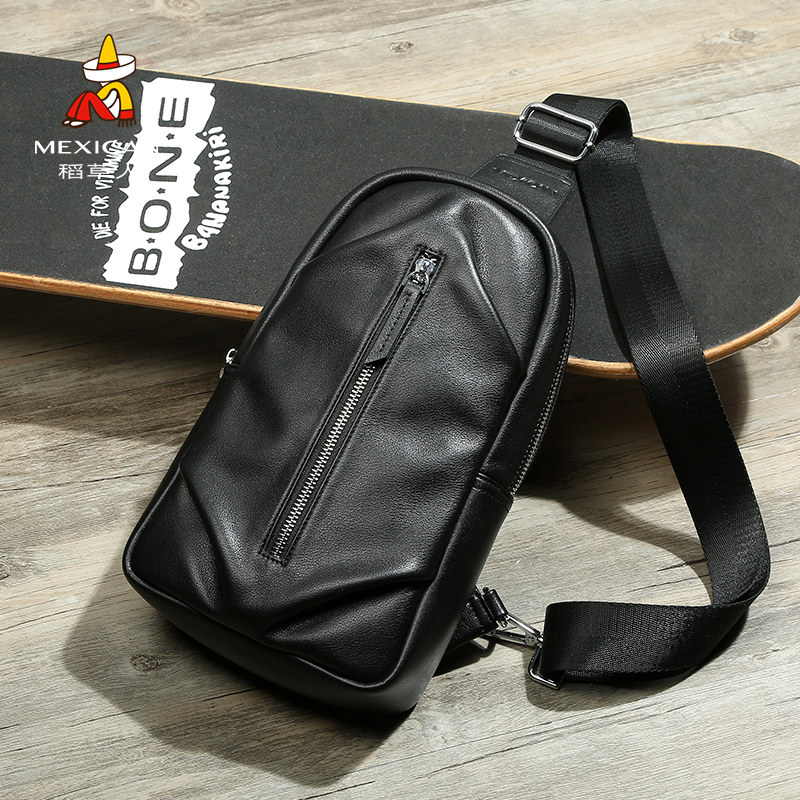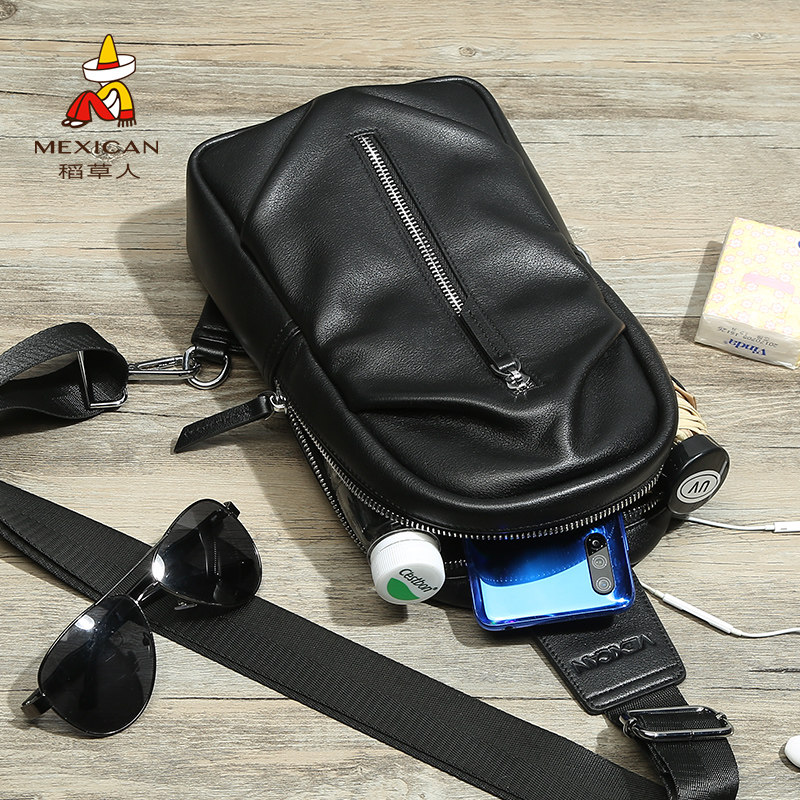 Rice Straw Man Chest Bag Men Genuine Leather Skew Satchel Casual Fashion Tide Card Single Shoulder Baotou Layer Bull Leather small Bag Men Bag