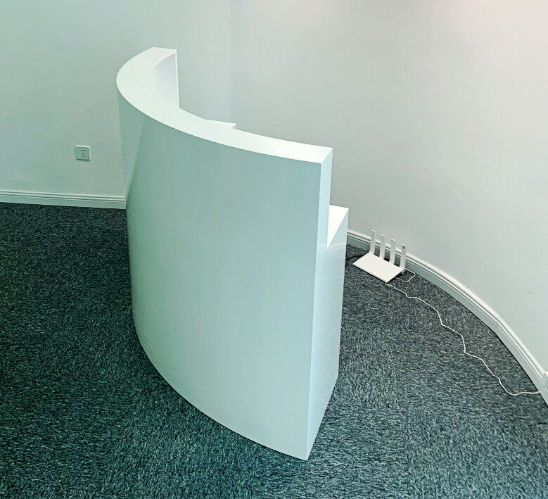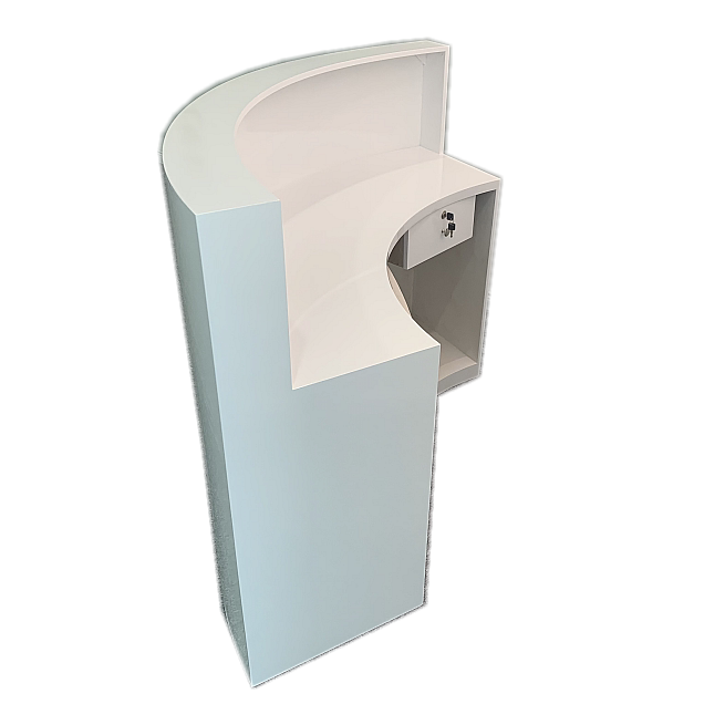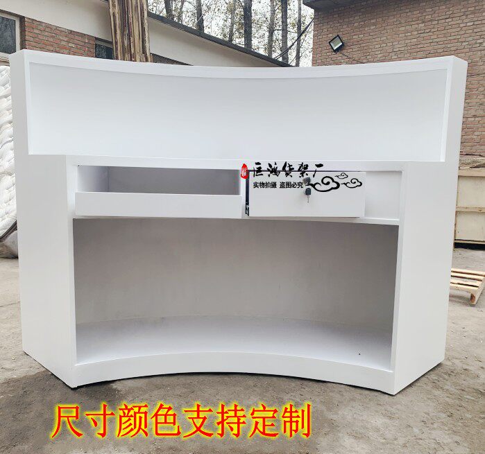 White paint curved front desk corner reception desk image desk semi-circular podium small cash register company bar