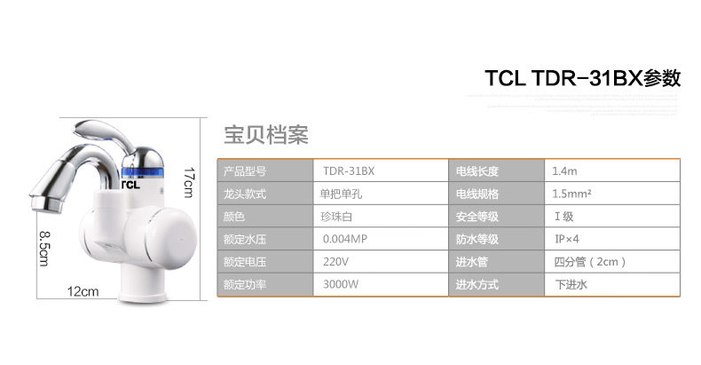 TCL TDR-31BX instant heat electric faucet Kitchen speed thermoelectric water heater small bend down water small kitchen treasure