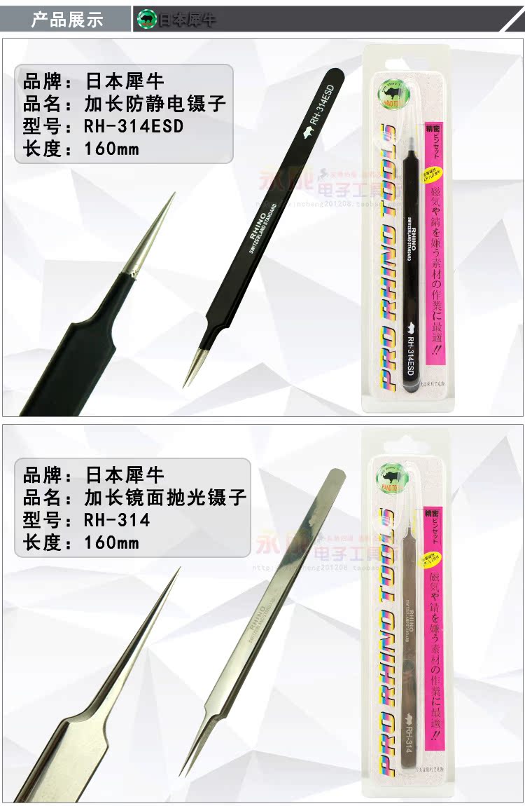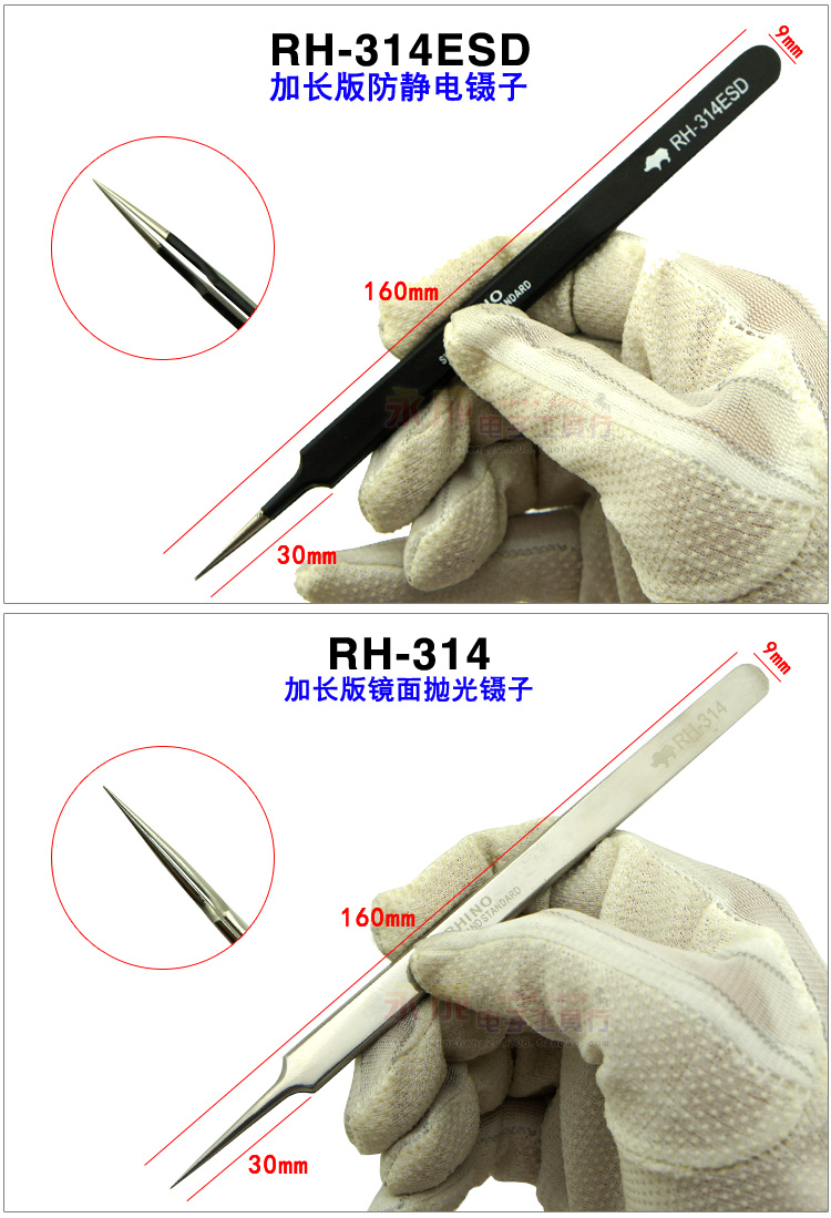 Black antistatic RH-315ESD (138mm) black antistatic RH-311ESD (168mm) polished silver RH-314 (160m