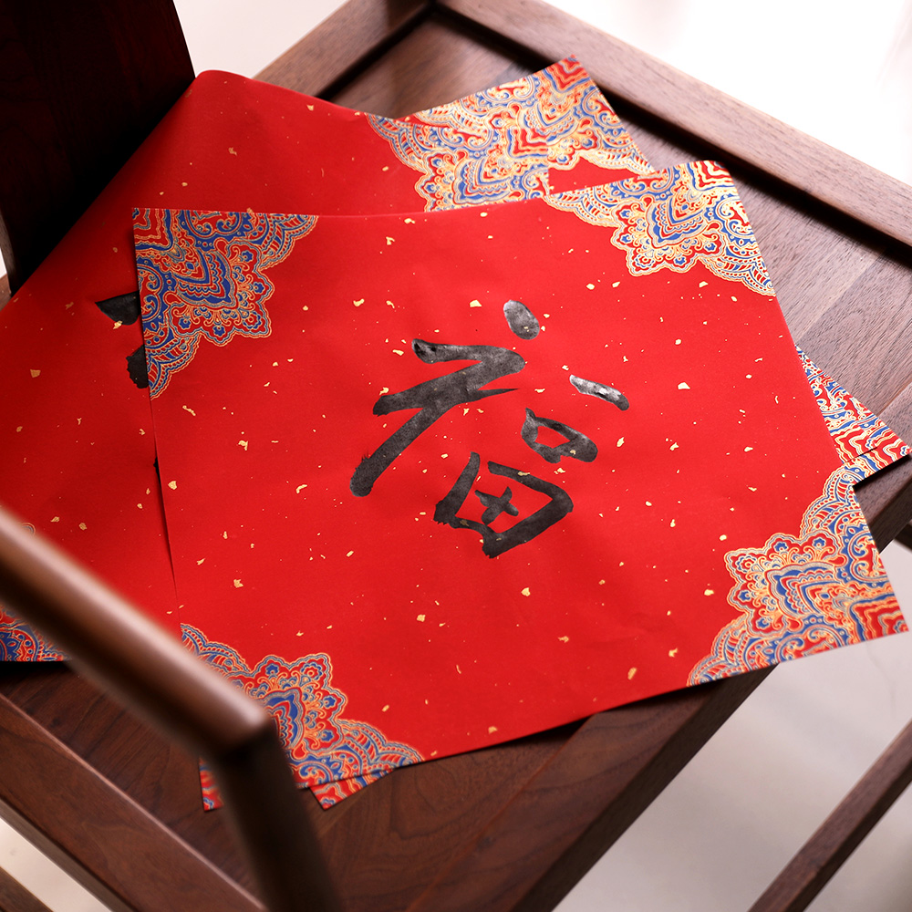 Couplet Paper Ten Thousand Years Red Spring Paper Wholesale Fu Zi Dou Fang Blank Handwriting Thick Half-Cooked Rice Paper Seven Words Five Words Sprinkled Golden Dragon Phoenix Xiang Gilded 2022 New Year Writing Couplet Special Red Paper