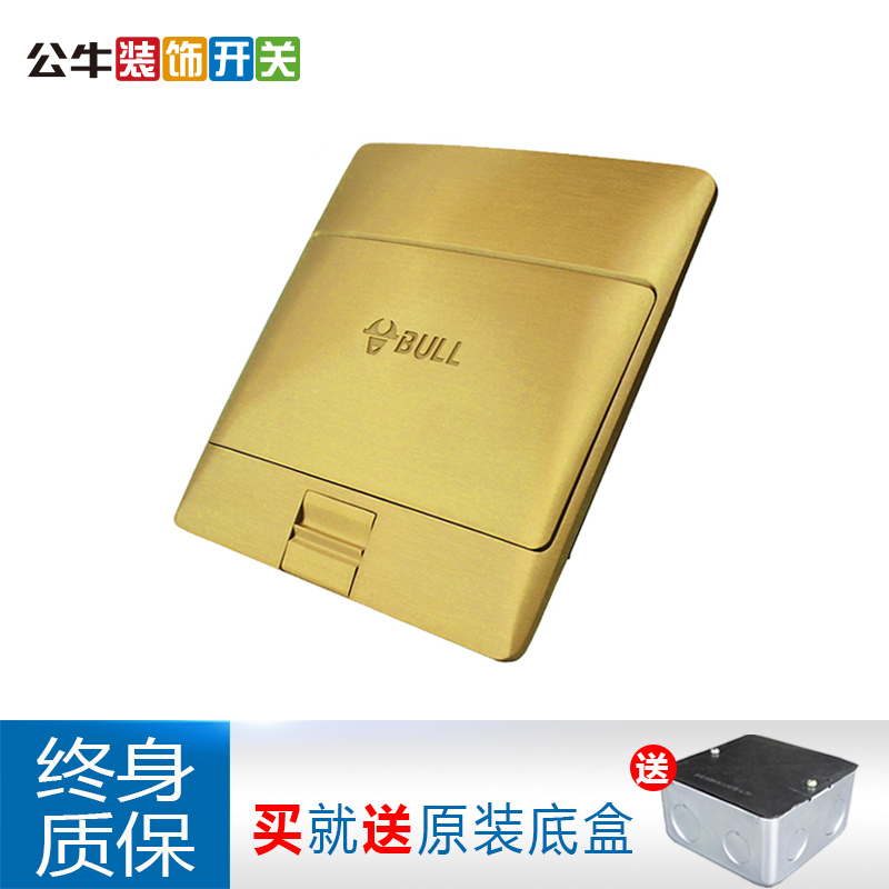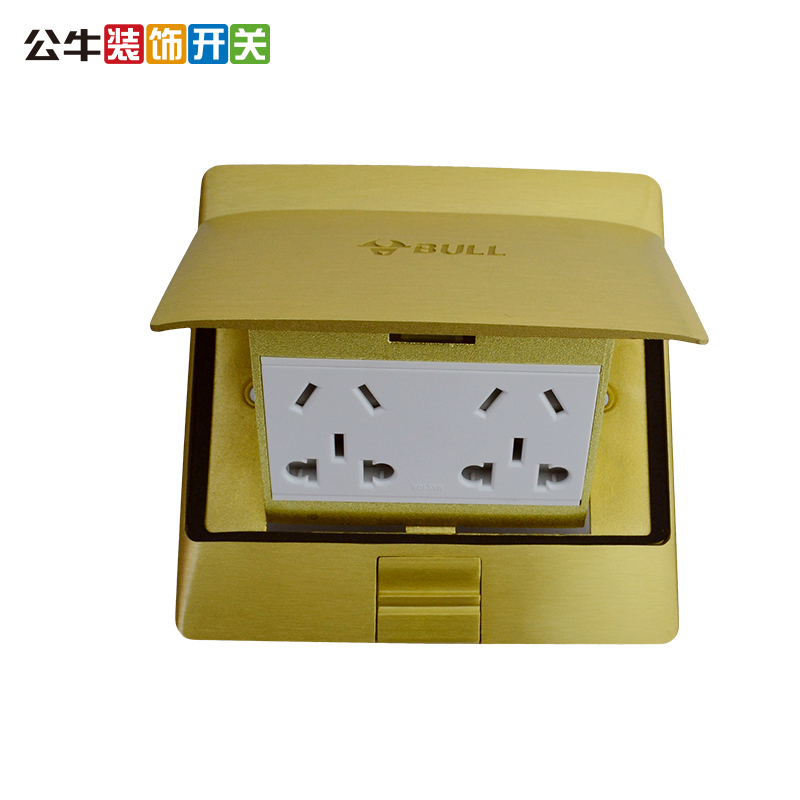Bull ground socket full copper waterproof damping power supply five-hole multi-functional household ground floor ten-hole socket panel