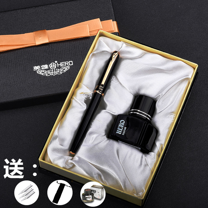 Hero Pen 1079 Extra Fine Nib 0.38mm 0.8 Art Pen Student Adult Male and Female With Practice Word Office Business Lettering Gift Box Ink Sac Ink Pen Signature Pen Gift Gift Customization