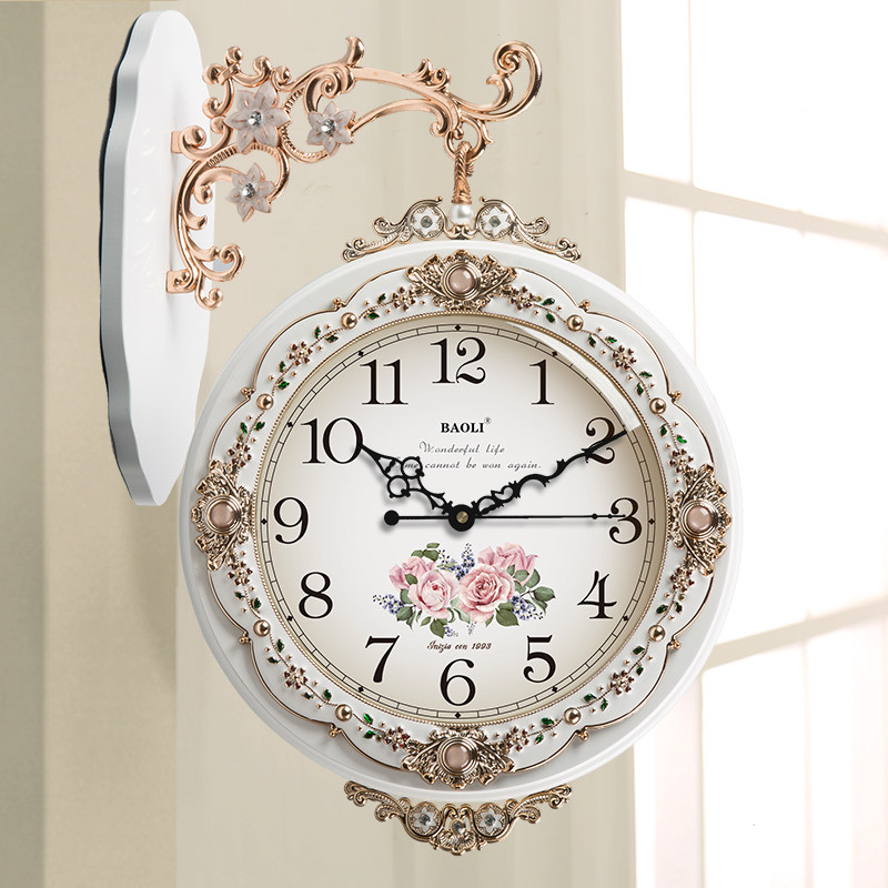 Polaroid European-style double-sided wall clock living room creative art two-sided decoration solid wood modern wall clock silent large wall watch