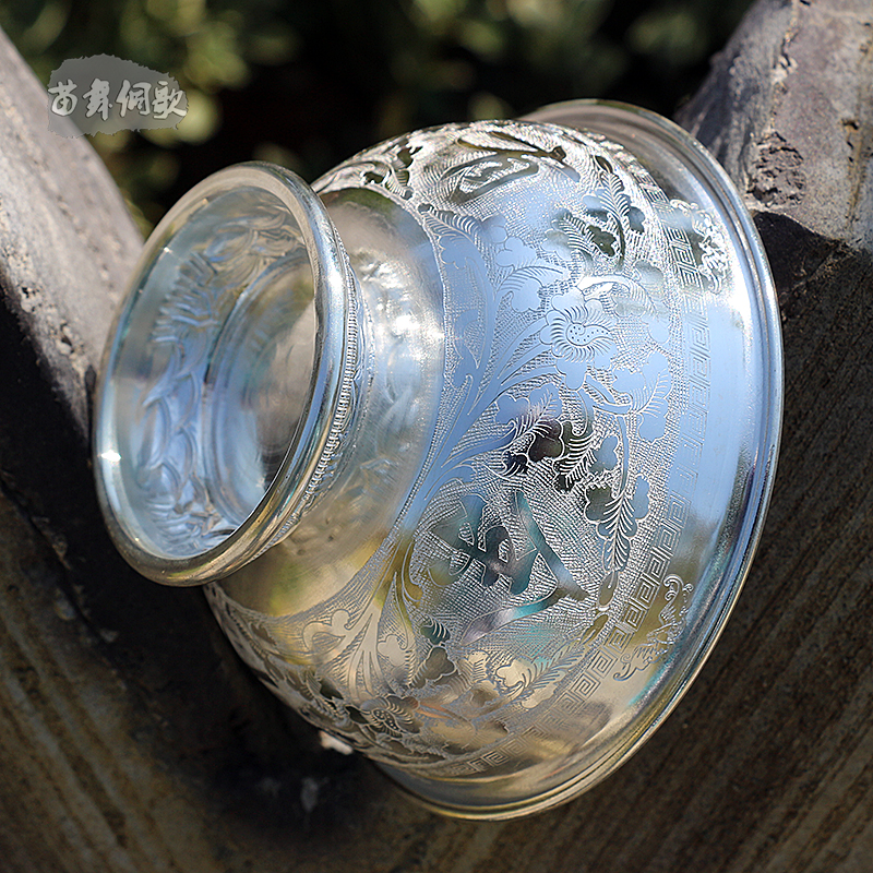 Handmade sterling silver bowl Miao dance Dong song foot silver blessing word More than a year Silver bowl collection Birthday gift boutique