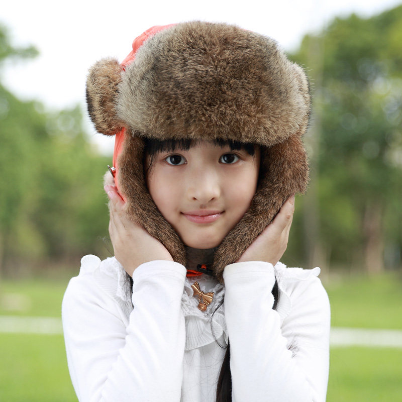 Children's hat Autumn and winter men's and women's Korean version of the tide boy baby thickened warm winter ski Lei Feng hat leather Rex rabbit hair
