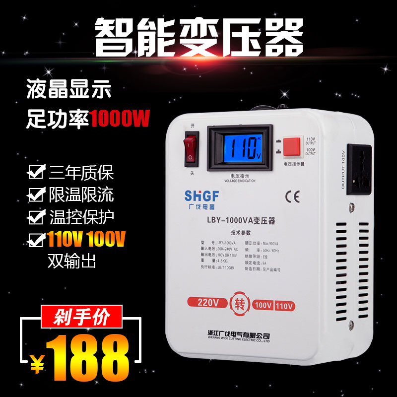 Guangfa transformer 220v to 110v to 100V Japan and the United States Electrical power supply voltage converter 1000w