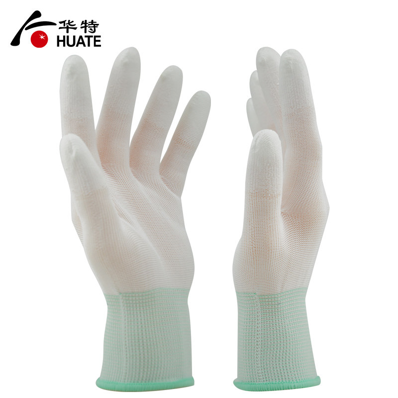 PU coated finger gloves white nylon anti-hand printing flexible and breathable dust purifying workshop Precision operating labor supplies